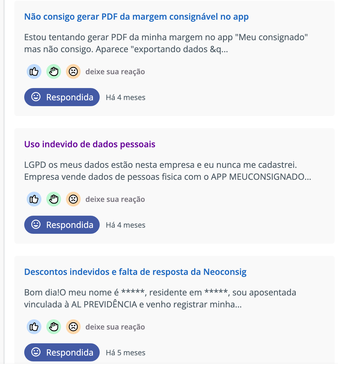 A NEOCONSIG É UMA DAQUELAS EMPRESAS DE CONTROLE DE CONSIGNADO (TEM VÁRIOS EXEMPLARES DESSAS EMPRESAS NAS REPORTAGENS SOBRE AS FRAUDES NO INSS) QUE ACUMULA RECLAMAÇÕES NO RECLAME AQUI: