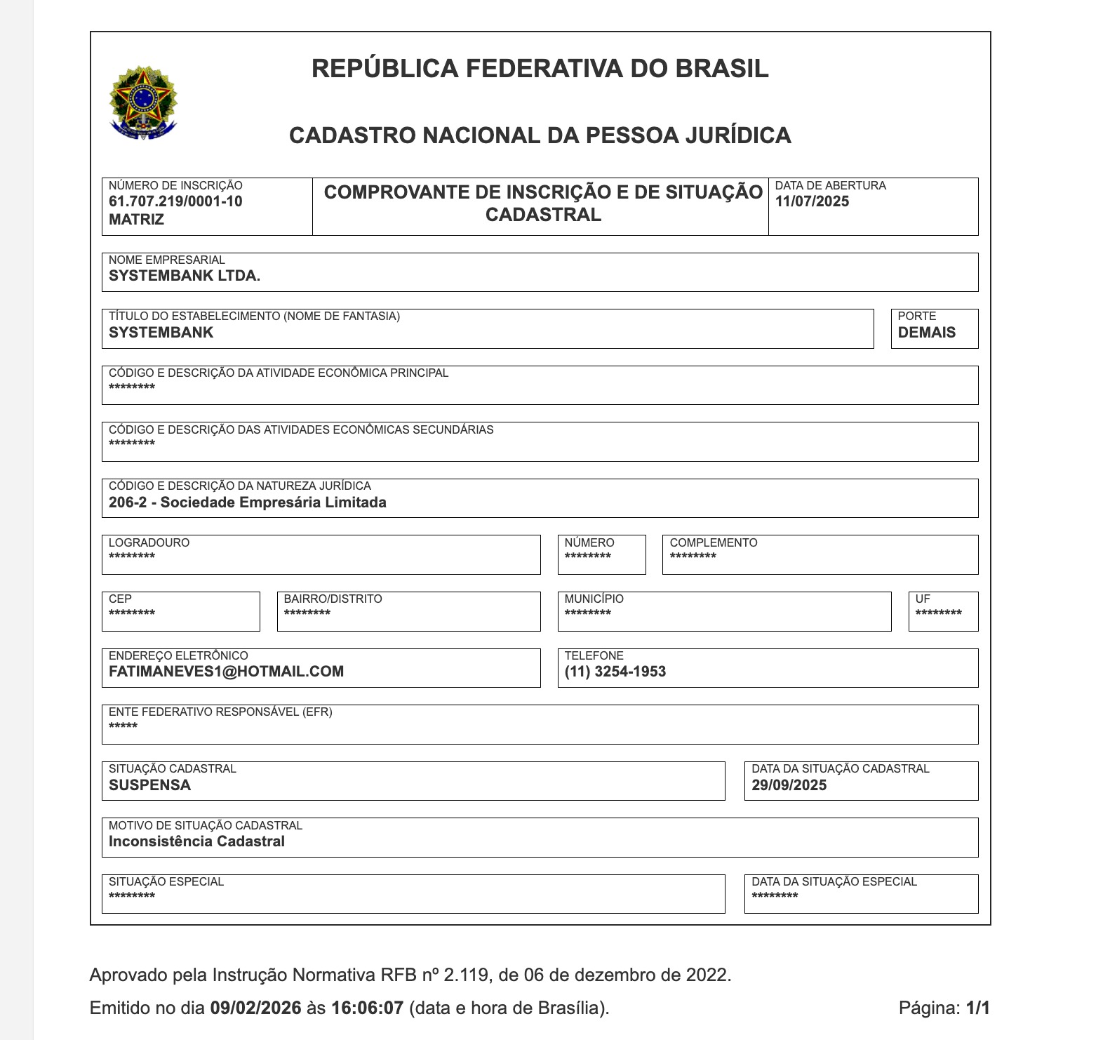 COM CREDENCIAMENTO ASSINADO EM 30/12/2025, AO APAGAR DAS LUZES DO ANO QUE PASSOU, A EMPRESA DE UMA SÓCIA (LARANJA) SÓ, JÁ INICIOU 2026 APROVADA NO PENTE FINO DA EXIGENTÍSSIMA COMISSÃO DE CREDENCIAMENTO DO DETRAN/RJ…SÓ QUE NÃO. DEIXARAM PASSAR UM IMPORTANTE DETALHE…A EMPRESA TEM O STATUS CADASTRAL DE SUSPENSA NA RECEITA FEDERAL…
